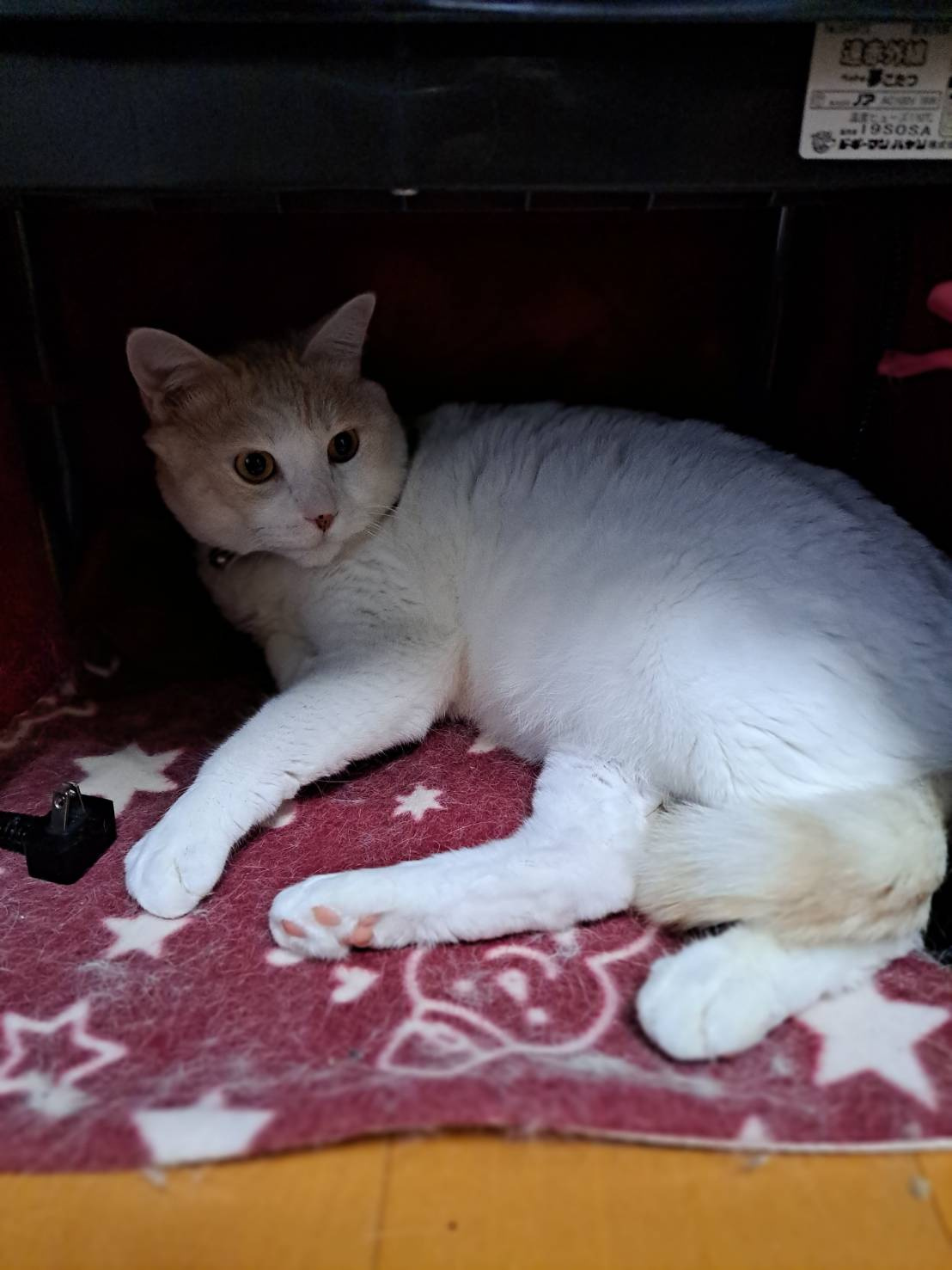 エアコンが苦手なもんで、ねこ用こたつに入っています。